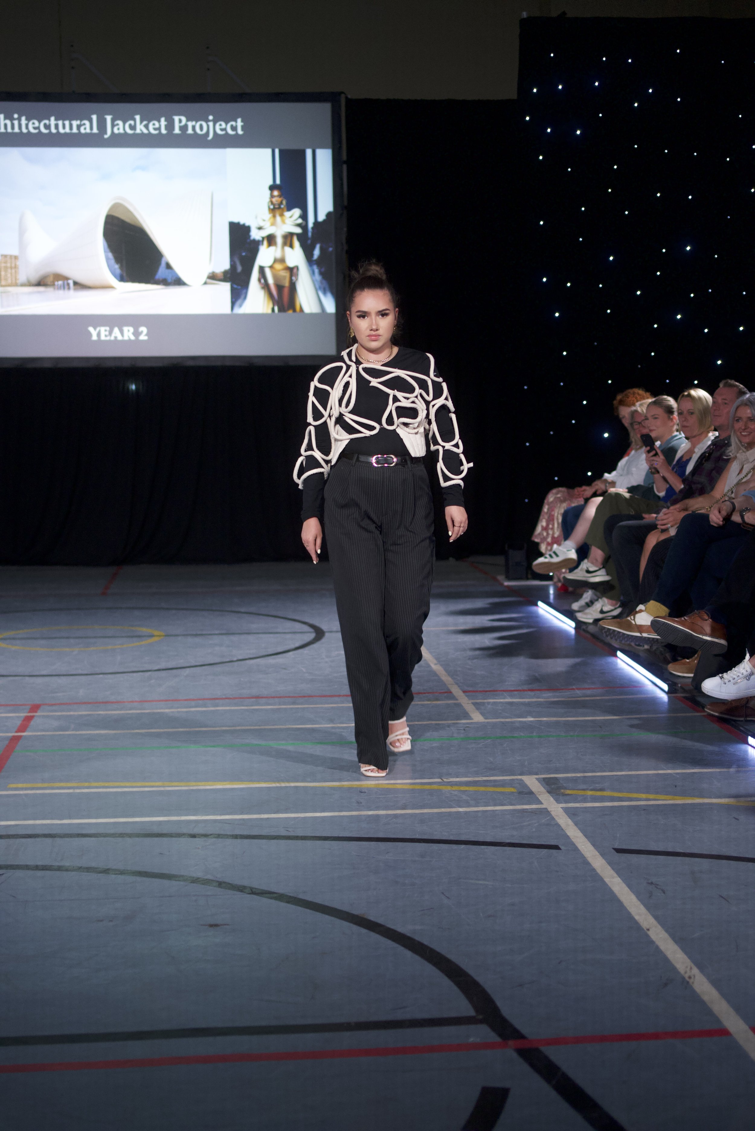 Architectural jacket - taking 3D elements inspired by architect designer Zaha Hadid.